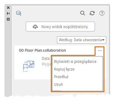 Za pomocą opcji w menu Więcej można zarządzać widokami współdzielonymi.