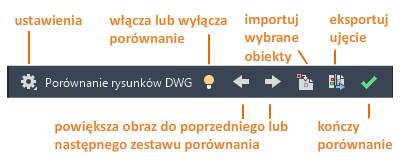 Po rozpoczęciu operacji porównywania jest wyświetlany pasek narzędzi aplikacji Porównaj DWG.