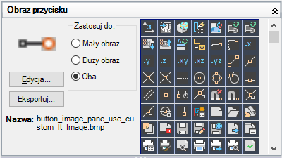 Wybierz obraz z listy obrazów, a jego nazwa zostanie przypisana do właściwości obrazu Mały obraz i/lub Duży obraz wybranego polecenia.
