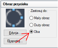 W panelu Obraz przycisku, w obszarze Zastosuj do wybierz jedną z trzech opcji przypisania: Mały obraz, Duży obraz lub Obydwa.