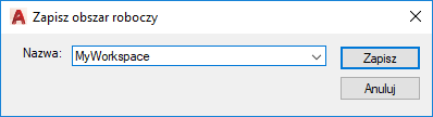 2. W oknie dialogowym Zapisz obszar roboczy w polu Nazwa wprowadź nazwę, aby utworzyć nowy obszar roboczy lub wybrać z listy rozwijanej obszar, który zostanie zastąpiony.