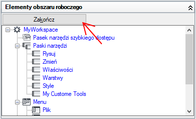 7. W panelu Zawartość obszaru roboczego kliknij Zakończ.
