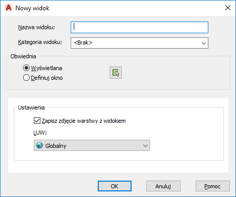 W przypadku widoków modeli i układów: określa układ LUW, który zostanie zapisany przy użyciu nowego widoku.