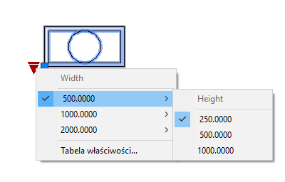 Jeśli wartości parametrów w odniesieniu do bloku dynamicznego odpowiadają wierszowi wartości właściwości wejściowych w tabeli przeglądowej, to odpowiednie wartości właściwości tabeli przeglądowej zostaną przypisane do odniesienia do bloku. Te właściwości i wartości przeglądania wyświetlane są na palecie Właściwości w polu Niestandardowe.