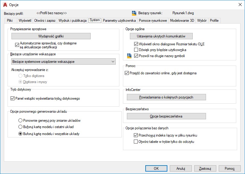Niektóre opcje pokazane powyżej nie są dostępne w programie AutoCAD LT.