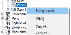 Nowy panel (o nazwie Panel1) zostanie umieszczony u dołu węzła Panele.