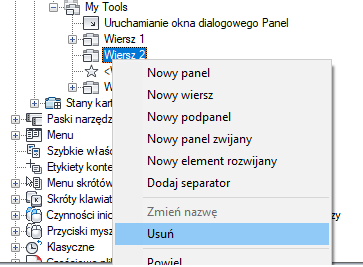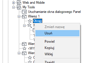 4. Kliknij prawym przyciskiem myszy wiersz lub podpanel, który ma zostać usunięty. Kliknij przycisk Usuń.