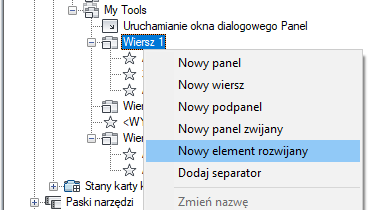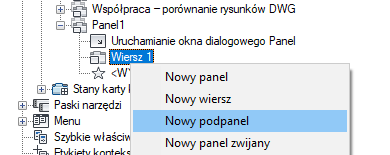 5. Kliknij prawym przyciskiem myszy wiersz i wybierz polecenie Nowy podpanel lub Nowy panel zwijany.