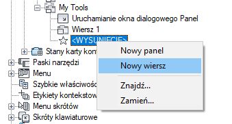 3. Kliknij prawym przyciskiem myszy panel wstążki, do którego ma zostać dodany wiersz. Kliknij polecenie Nowy wiersz.