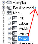 - Na karcie Dostosuj w panelu Dostosowywanie w pliku <nazwa pliku> kliknij znak plusa (+) obok węzła Menu, aby go rozwinąć.