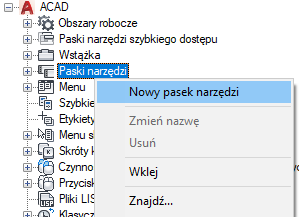 Nowy pasek narzędzi (o nazwie Paseknarzędzi1) zostanie umieszczony na dole drzewa Paski narzędzi.