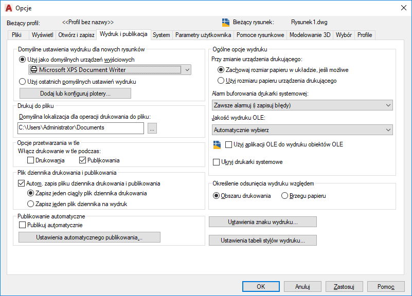 Określa, czy rysunki są publikowane automatycznie w plikach DWF, DWFx lub PDF. Można także określać opcje automatycznego publikowania.