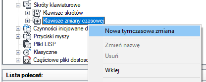 - Na karcie Dostosuj, w panelu Dostosowywane pliki: <nazwa pliku> kliknij znak plus (+) obok węzła Skróty klawiaturowe, aby go rozwinąć.