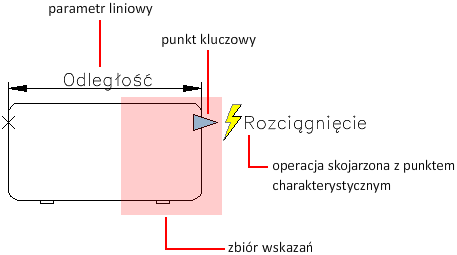 Operacje określają, w jaki sposób zmienia się lub przesuwa geometria odniesienia do bloku dynamicznego, gdy użytkownik manipuluje jej uchwytami.