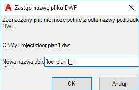 Umożliwia zmianę nazwy podkładania DWF, jeśli nazwa nie jest unikalna.