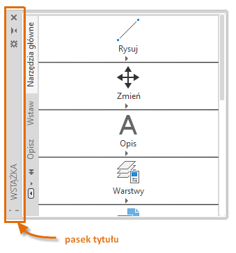 - Kliknij pasek tytułu i przeciągnij uwolnioną wstążkę do lewej, prawej lub górnej krawędzi obszaru rysunku