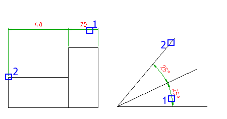 Tworzy wymiar liniowy, kątowy lub długości łuku od drugiej linii pomocniczej wybranego wymiaru.