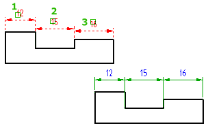 Określa zestaw wymiarów współrzędnościowych do wyrównania do wymiaru bazowego. Można wybrać tylko zestaw wymiarów współrzędnościowych, których linie pomocnicze są równolegle do wymiaru bazowego.
