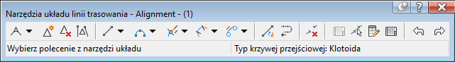 Nazwa wybranej linii trasowania jest wyświetlana w górnej części paska narzędzi. Po kliknięciu ikony bieżące polecenie jest wyświetlane na dole paska narzędzi. Pasek narzędzi pozostanie otwarty w przypadku rozpoczęcia edycji za pomocą uchwytów lub wprowadzenia kolejnego polecenia. Pasek narzędzi zostaje zamknięty po usunięciu wybranej linii trasowania lub kliknięciu przycisku X w prawym górnym rogu paska narzędzi.