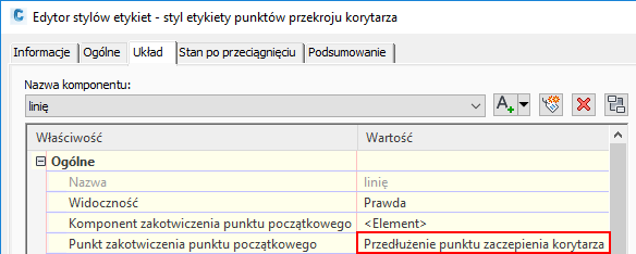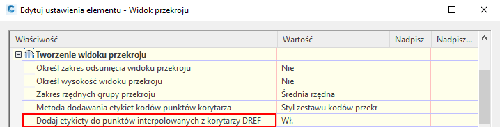 Więcej informacji na ten temat można znaleźć w sekcji Okno dialogowe Edytuj ustawienia elementu — Widok przekroju. Aby uzyskać więcej informacji na temat oznaczania etykietami punktów korytarza, zobacz temat Etykietowanie kodów punktów korytarza w widoku przekroju.