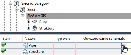 Konfigurowanie odwzorowania schematu sieci rurociągów po przeniesieniu danych ArcGIS do rysunku