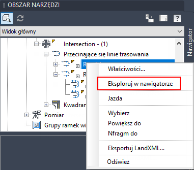 Innym elementem dostępnym w kolekcji Przecinające się linie trasowania jest polecenie Eksploruj w nawigatorze.