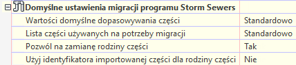 - Jeśli pierwotne skojarzenia rodziny części mają być zachowane w pliku STM, ustaw na Nie. Program Autodesk Civil 3D zachowa bieżącą rodzinę części programu Autodesk Civil 3D niezależnie od ustawień Domyślne ustawienia migracji programu Storm Sewers.