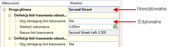 Cieniowanie właściwości niemożliwych do edycji: właściwości, które w oknach dialogowych edycji nie są możliwe do edycji, są wyświetlane z szarym (cieniowanym) kolorze tła. Właściwości możliwe do edycji są wyświetlane z białym (niecieniowanym) kolorem tła.