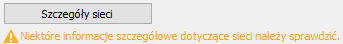 Jeśli niektóre z informacji dotyczących szczegółów sieci powinny zostać zweryfikowane, pod przyciskiem Szczegóły sieci na stronie Ogólne wyświetlany jest komunikat ostrzegawczy.