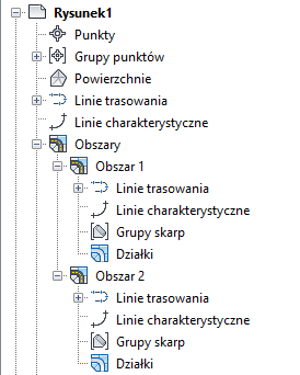 Każda kolekcja topologii obszaru zawiera kolekcje dla linii trasowania, profilowań i działek.