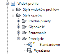 W obiektach przecinających używane są style etykiet Przecięcie widoku profilu.