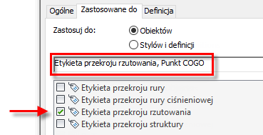 Aby oznaczyć punkty w programie Autodesk Civil 3D, wybierz opcję Punkt COGO jako typ obiektu na karcie Zastosowane do.