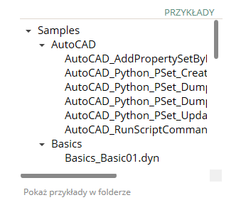 Na stronie startowej dodatku Dynamo te przykładowe pliki są wymienione w sekcji Przykłady: