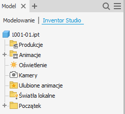 - Można obecnie łatwo przełączać pomiędzy przeglądarką modelu, zespołu i przeglądarkami innych środowisk za pomocą pojedynczego kliknięcia. Przykładowo, jeśli środowisko programu Inventor Studio jest aktywne, można obecnie po prostu kliknąć, aby przełączyć się między przeglądarką Inventor Studio a przeglądarką Modelowanie.