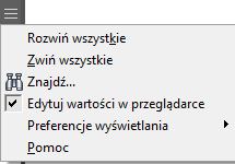 - W pliku zespołu i prezentacji można wybrać nową opcję menu przeglądarki Edytuj wartości w przeglądarce, aby włączyć lub wyłączyć pole edycji w przeglądarce (niedostępne w programie Inventor LT).