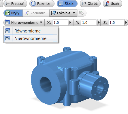 Dodano polecenie Powierzchnia prostokreślna, umożliwiające tworzenie powierzchni prostopadłych, powierzchni stycznych lub powierzchni przeciągnięcia. Powierzchnie prostokreślne służą do tworzenia kieszeni, dzielenia złożonych brył po utworzeniu skorupy lub tworzenia powierzchni podziału w przypadku projektu formy.