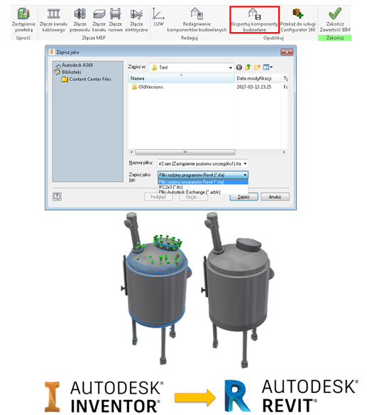 Udoskonalono zawartość BIM pod kątem procesów roboczych upraszczania, redagowania i publikowania. W programie Inventor 2018 można publikować bezpośrednio do formatu plików IFC i programu Revit (.rfa).