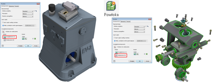W pewnym stopniu skorzystają wszystkie dokumenty, ale najbardziej istotne udoskonalenia są widoczne podczas pracy z dużymi zespołami i dużymi rysunkami zespołów. Na przykład: