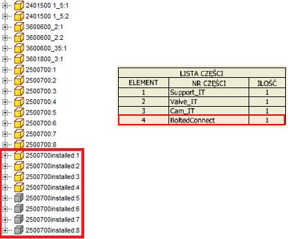 Tabele Ogólne, Listy części, Otwór lub Tabelki zmian na rysunkach, w kolumnach i nagłówkach obsługują teraz automatyczne zawijanie tekstu. Nagłówki kolumn są zawijane do minimalnej szerokości, uwzględniając najdłuższe słowo w kolumnie. Nagłówki tabeli są zawijane do minimalnej szerokości dołączonych kolumn.