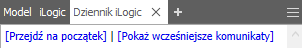 | Po usunięciu komunikatów z panelu łącza nawigacji wyświetlane są w górnej części panelu, jeśli dostępne są starsze komunikaty. | W panelu Dziennik iLogic może być wyświetlane maksymalnie 20 000 komunikatów jednocześnie. Po wprowadzeniu ponad 20 000 komunikatów łącza nawigacji na dole panelu umożliwiają dostęp do komunikatów utworzonych po osiągnięciu limitu 20 000. |