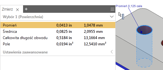 Aby uzyskać więcej informacji, zobacz temat Mierzenie odległości, długości, kąta, obwodu lub pola w modelu.