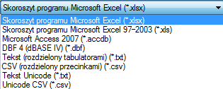 Nowa lista dopuszczalnych formatów eksportu globalnego zestawienia komponentów (BOM), list części i tabelek zmian jest teraz dostępna w menu rozwijanym.