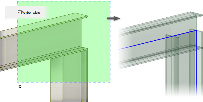 Poprzednio wybór za pomocą okna był niedostępny po użyciu polecenia Zmień. Wybór za pomocą okna jest obecnie włączony i można wybrać kilka elementów jednocześnie, używając opcji Wybór wielokrotny.