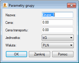 Aby zdefiniować lub zmodyfikować parametry grup, należy nacisnąć przycisk Nowa lub Zmiana w oknie dialogowym Oszacowanie kosztów.