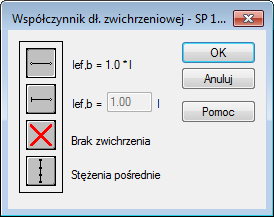 To okno dialogowe służy do określenia odpowiednich odległości między przekrojami pręta zabezpieczonego przed skręcaniem.