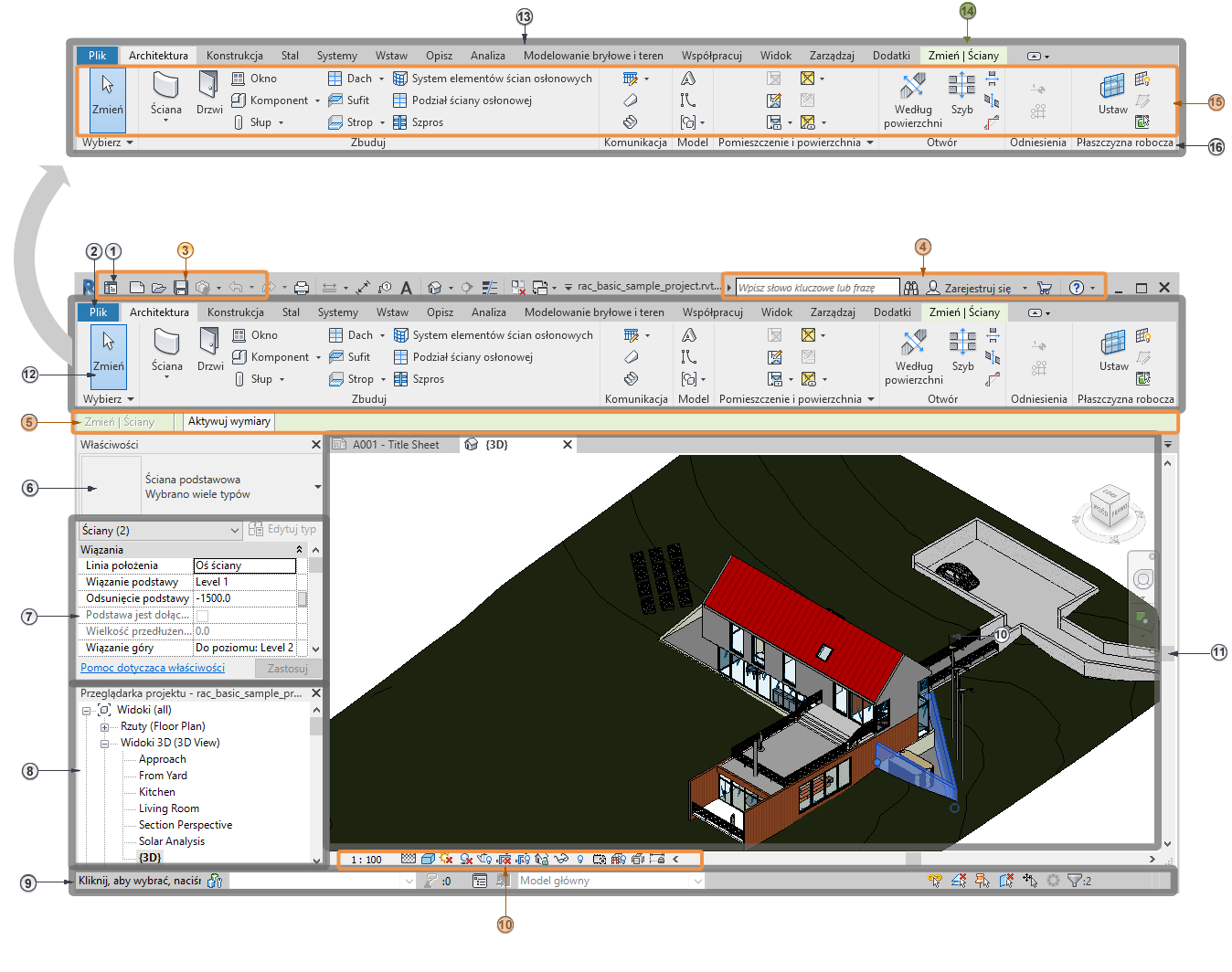 | 15 | Narzędzia na bieżącej karcie wstążki |