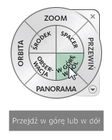 | Współczynnik prędkości | Podczas wykorzystywania narzędzia Spacer do spaceru lub „lotu” przez model można kontrolować prędkość ruchu. Prędkość ruchu jest sterowana za pomocą odległości kursora od ikony koła centralnego. Można tu ustawić prędkość ruchu.