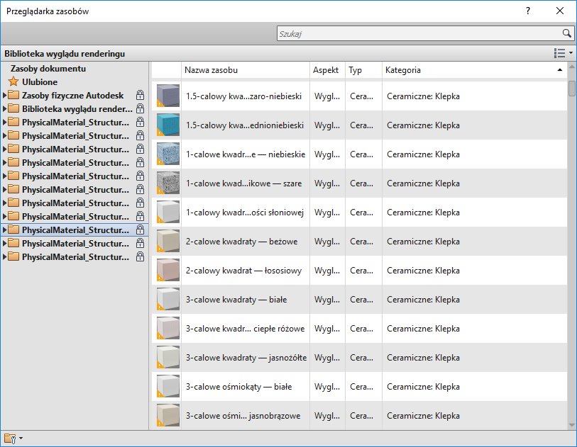 ) dla materiałów. Dzięki temu na widokach i renderowanych obrazach będą używane najnowsze i najlepsze reprezentacje materiałów.
