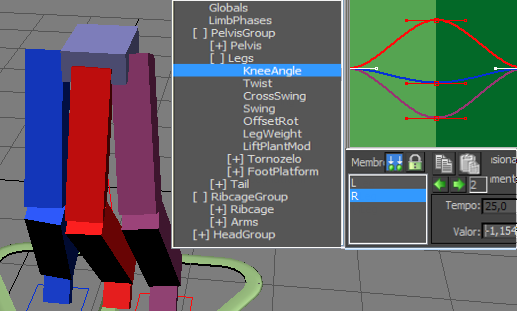 Todos os controladores, exceto OffsetRot e OffsetPos têm gráficos para exibir a curva para o movimento do controlador selecionado dentro do ciclo de movimento.