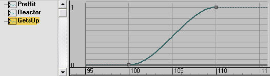 Gerenciador de camadas suspensa, clique em Abre o editor de curva para a espessura de camada global, mostrando as camadas existentes para rig. A ilustração a seguir mostra três camadas: PreHit, Reactor e GetsUp.